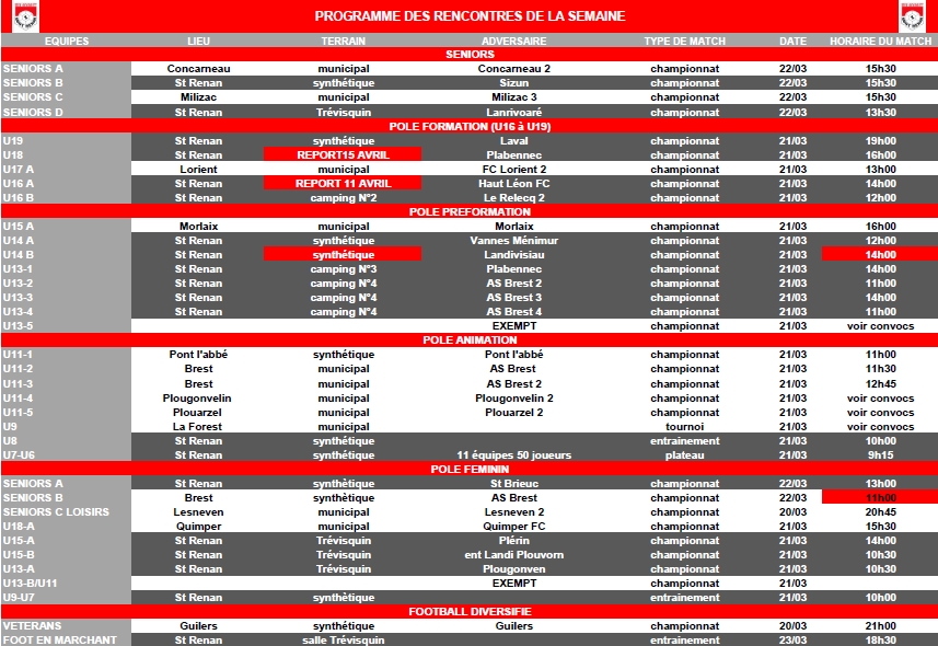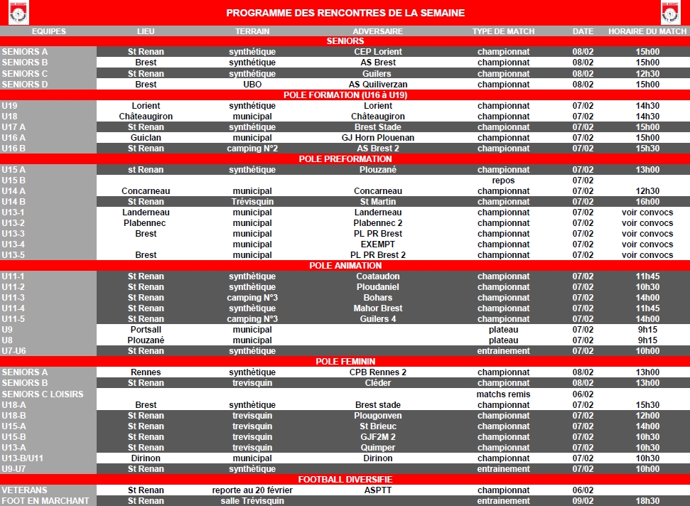 Planning de la semaine